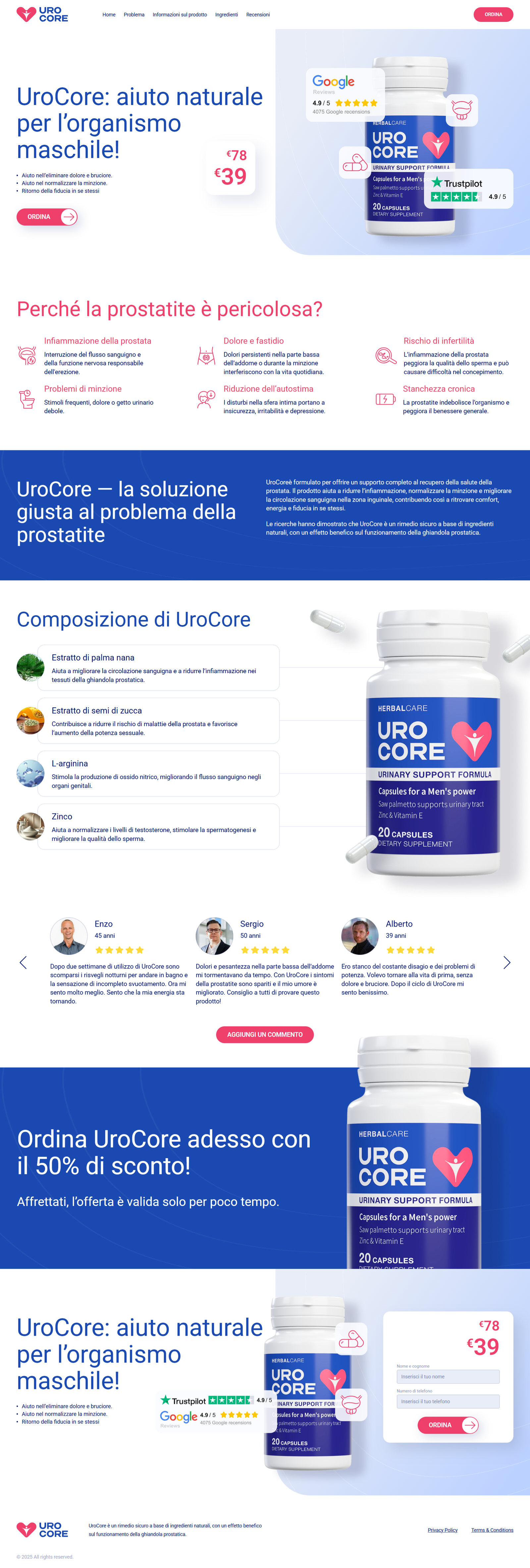 UroCoreé formulado para oferecer um suporte completo para a recuperação da saúde da próstata. O produto ajuda a eliminar a inflamação, normalizar a diminuição e melhorar a circulação sangüínea na zona inguinal, contribuindo assim para trazer conforto, energia e confiança em si mesmo.